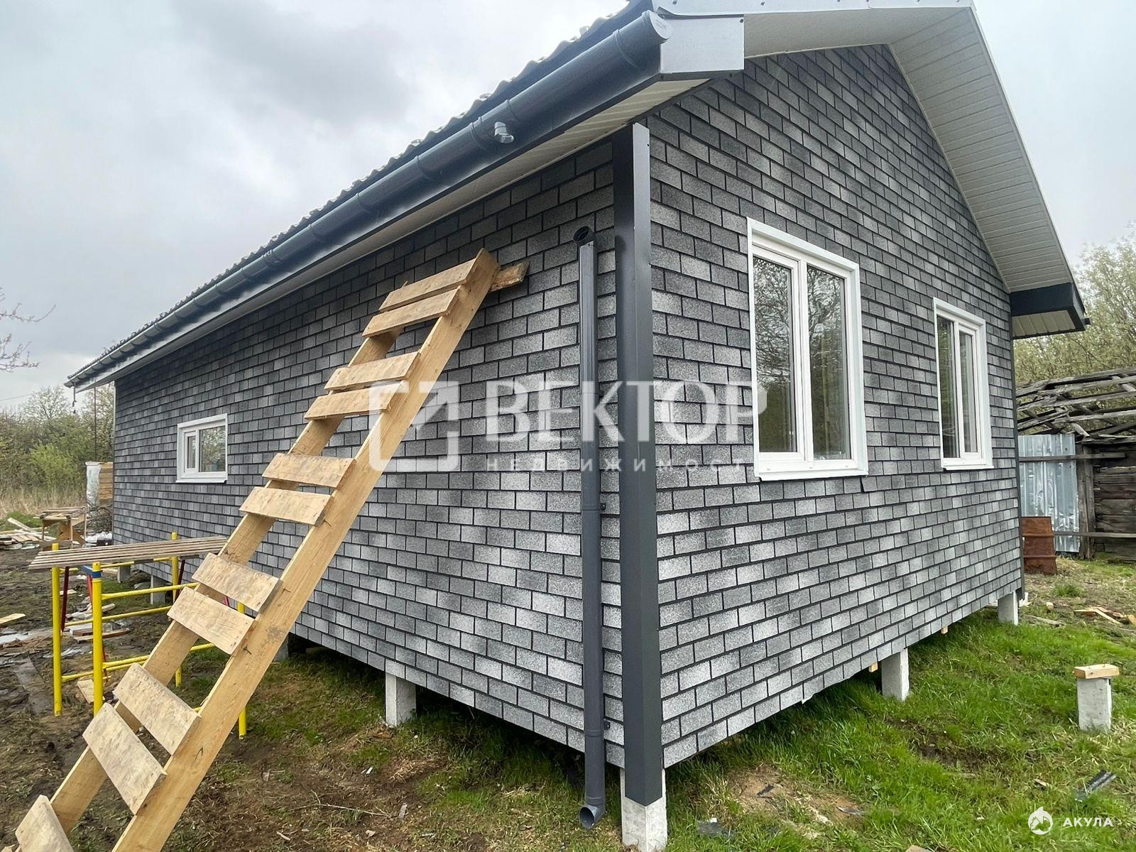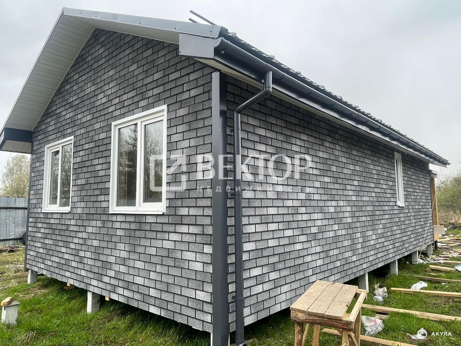 Дом построен по современной технологии: тёплые стены, надёжный фундамент на сваях, красивая отделка «под кирпич» (плитка Hauberk), окна ПВХ — всё основательно и с запасом на годы.