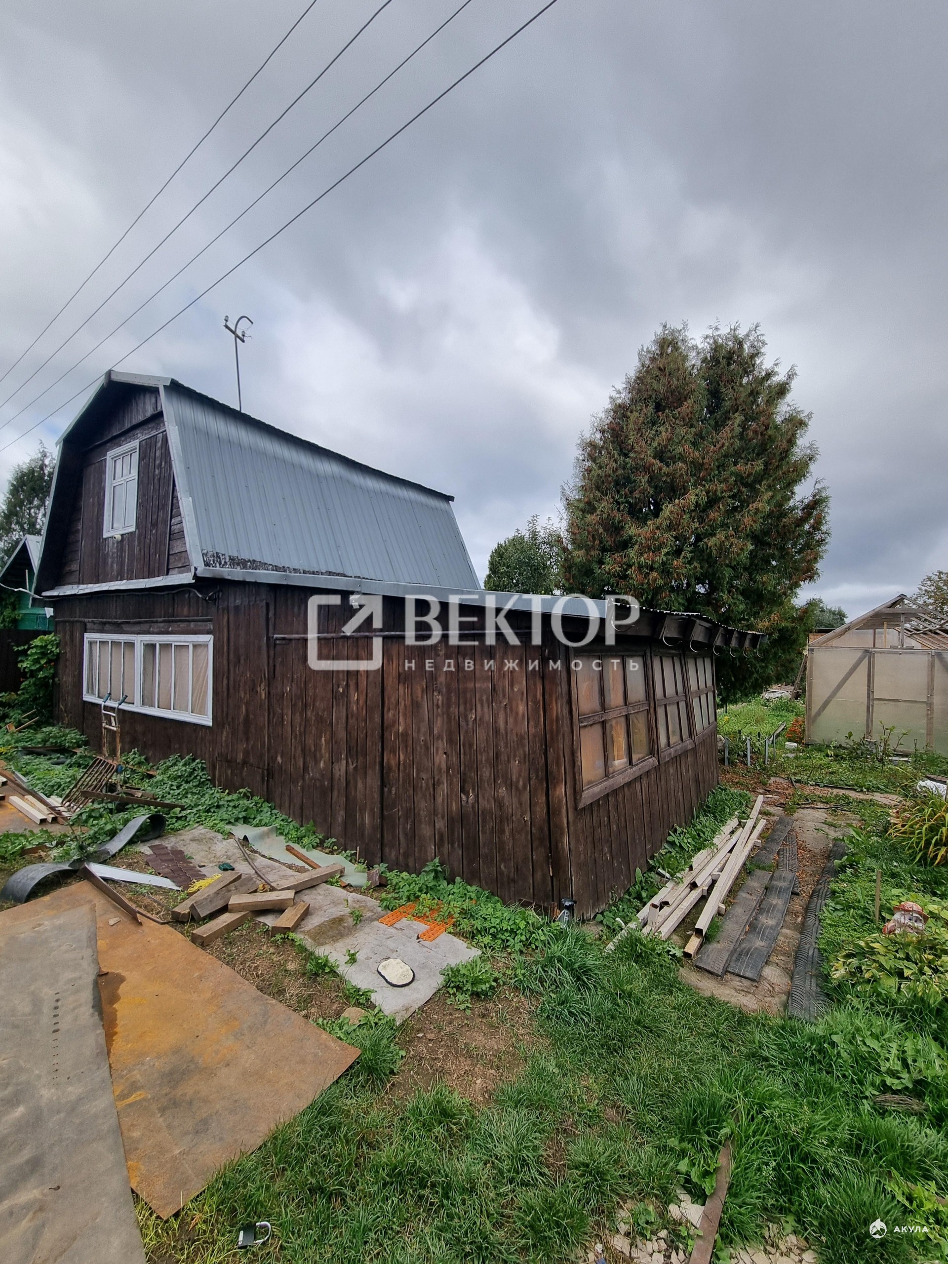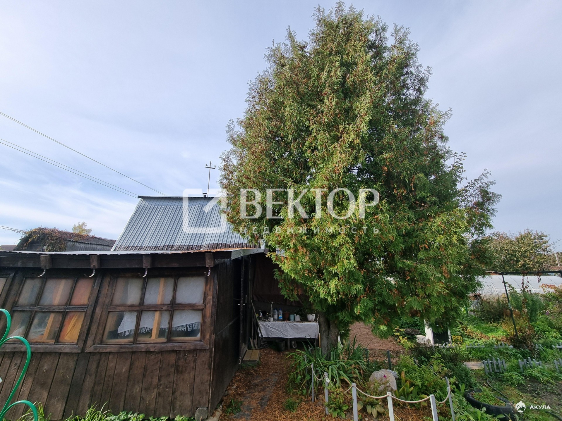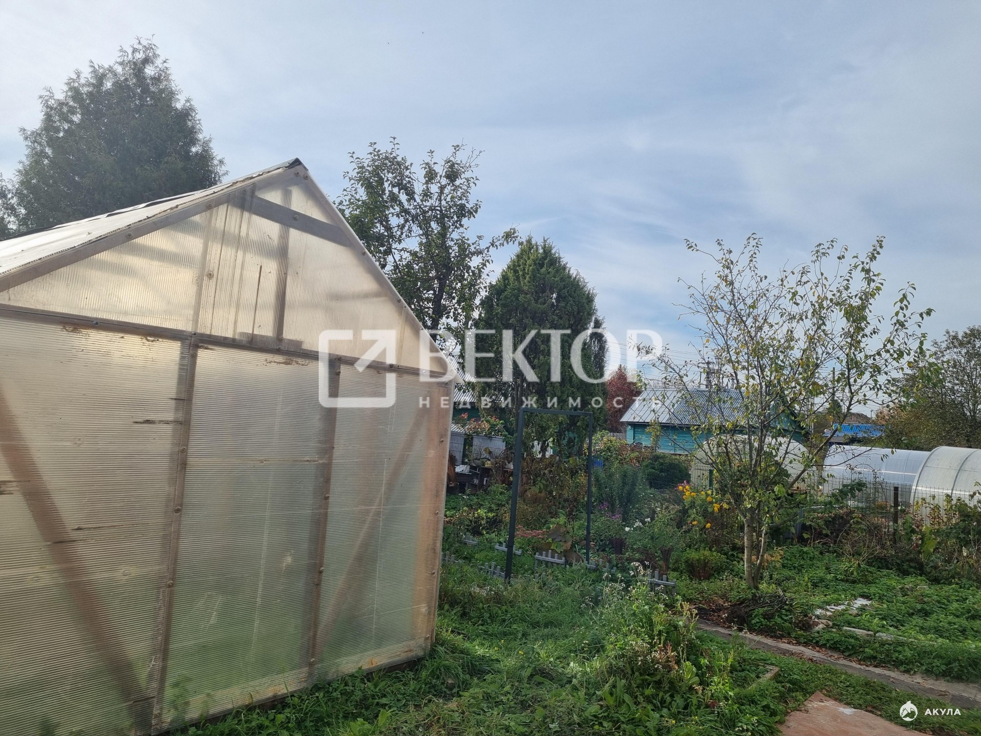 · Для отдыха и урожая: Уже есть основа для бани (постройка под оборудование), теплица и плодовые деревья.
