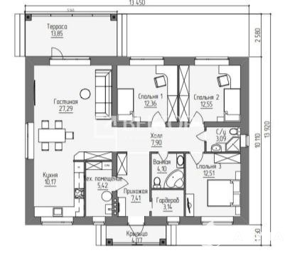 Просторная кухня - гостиная, техническое помещение, большая терасса.