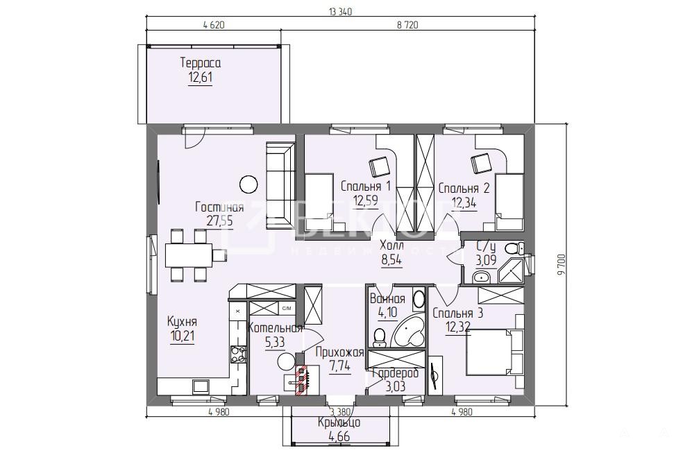 Общая площадь помещений: 112, 5 м².