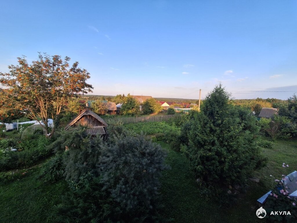 Прекрасный обзор на реку и другой берег с лесом, так как объект расположен на горе, за счет чего можно любоваться окружающей природой.