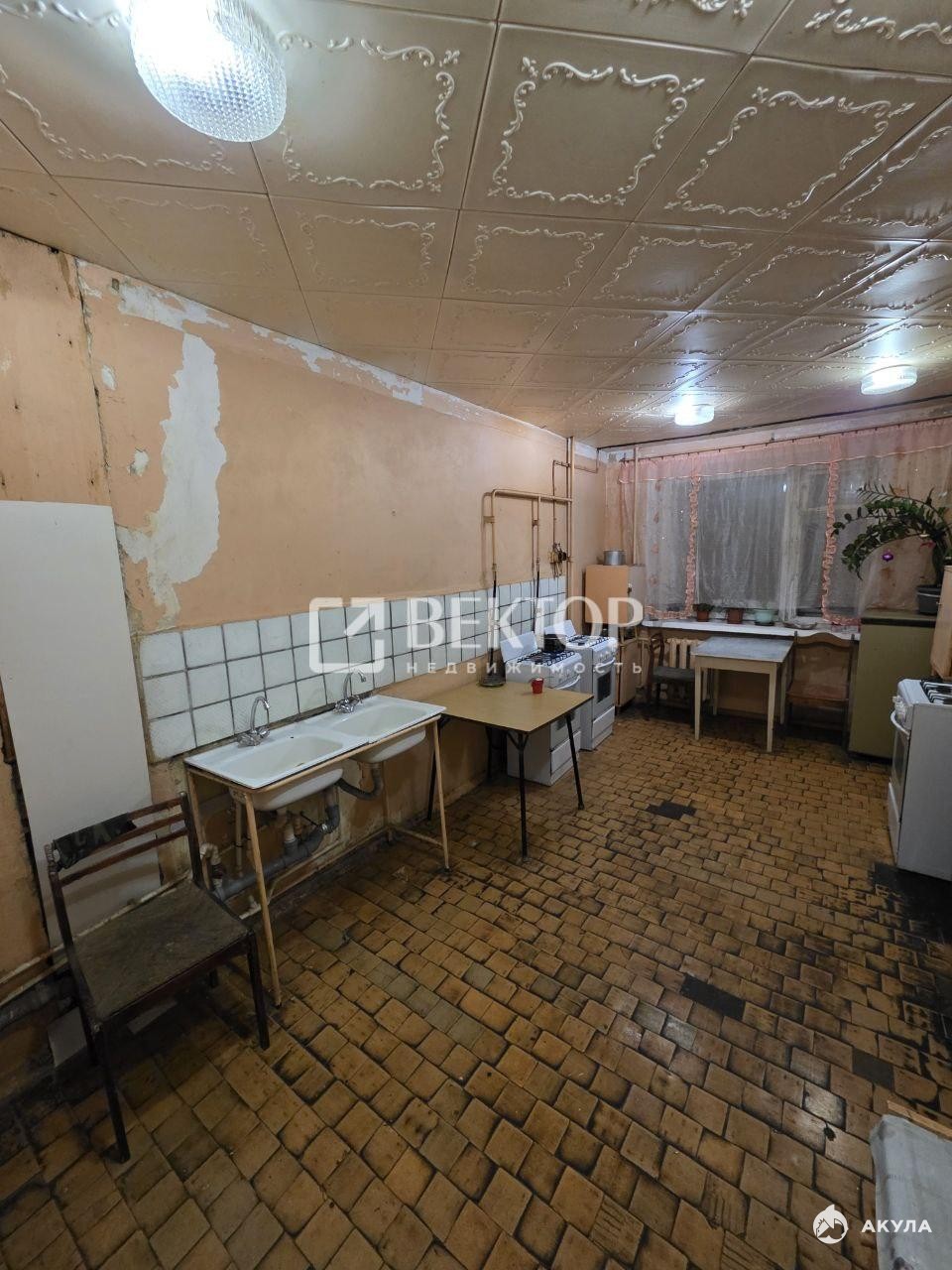 Две изолированные комнаты общей площадью 31 м. Кухня, общего пользования, оборудованная для нескольких квартир. Места хватит всем!