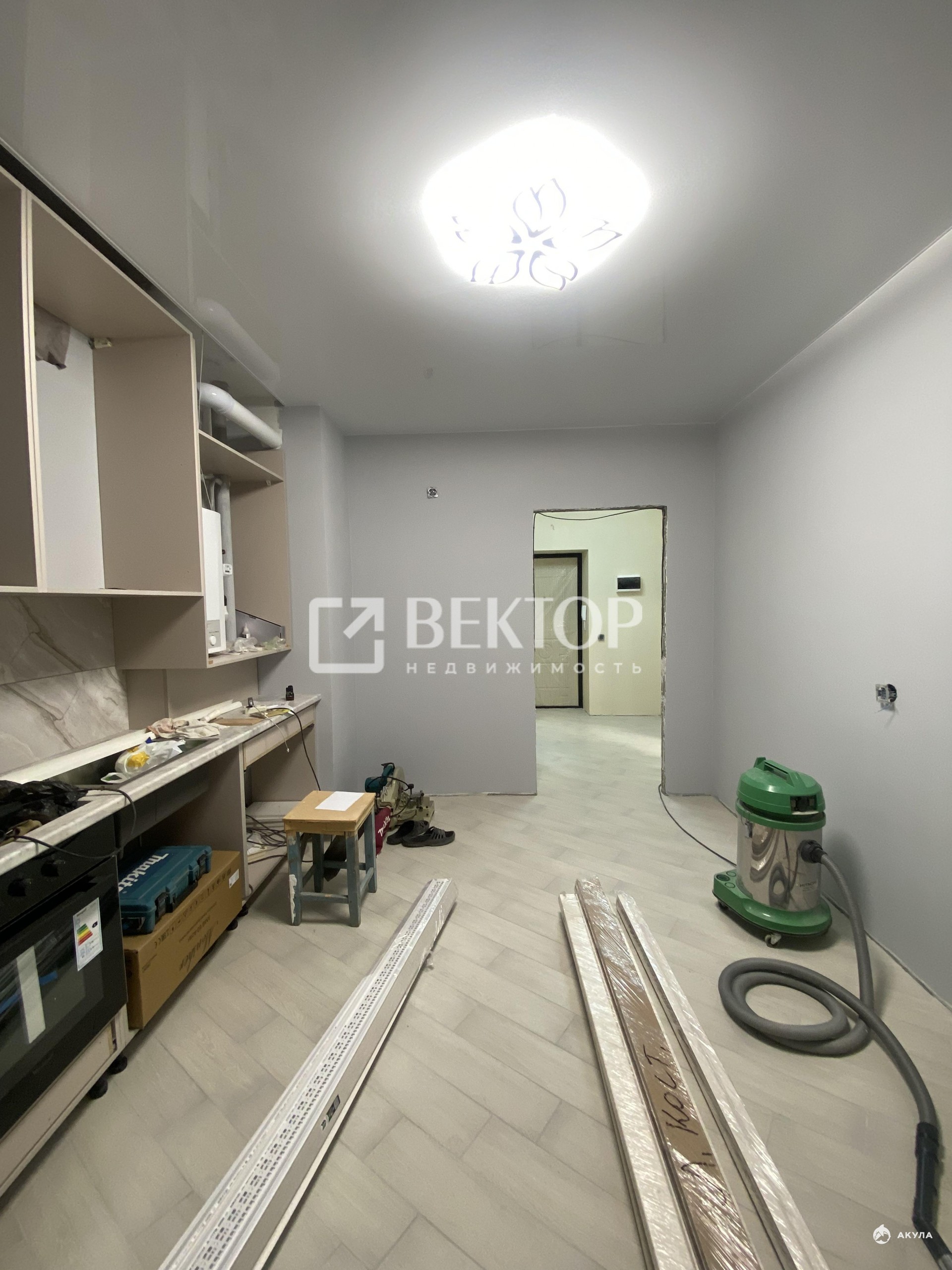 Установлена кухня - фасады будут заказаны в ближайшее время - при наличии покупателя - под его вкус.