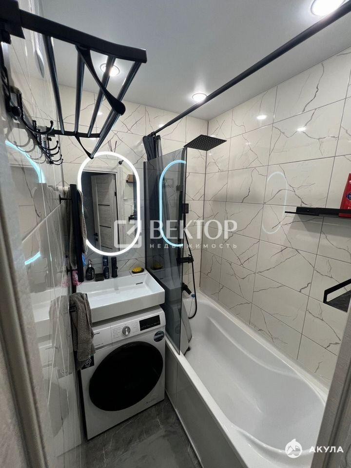 Планировка удобная: есть отдельная гардеробная, застеклённый балкон и раздельный санузел. Установлены натяжные потолки с зональным освещением, скрытые гардины на кухне и в комнате. Квартира тёплая и уютная, никаких вложений не требуется.