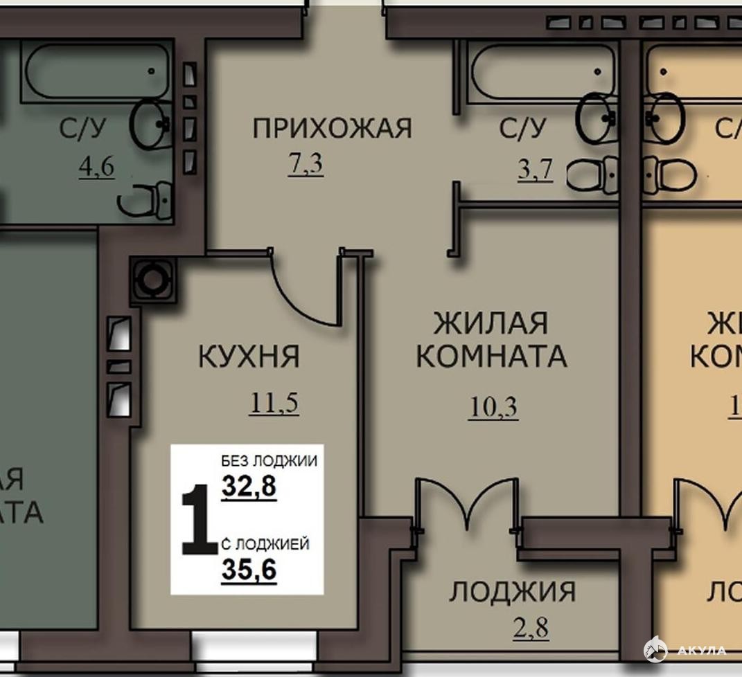 - Количество комнат: 1