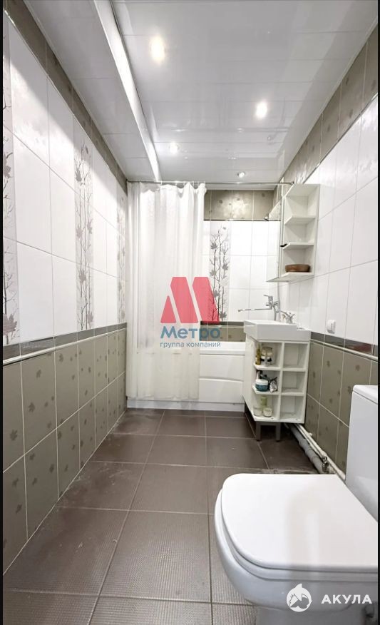Санузел отделан керамогранитом, натяжные потолки, нейтральные обои, качественная входная дверь.