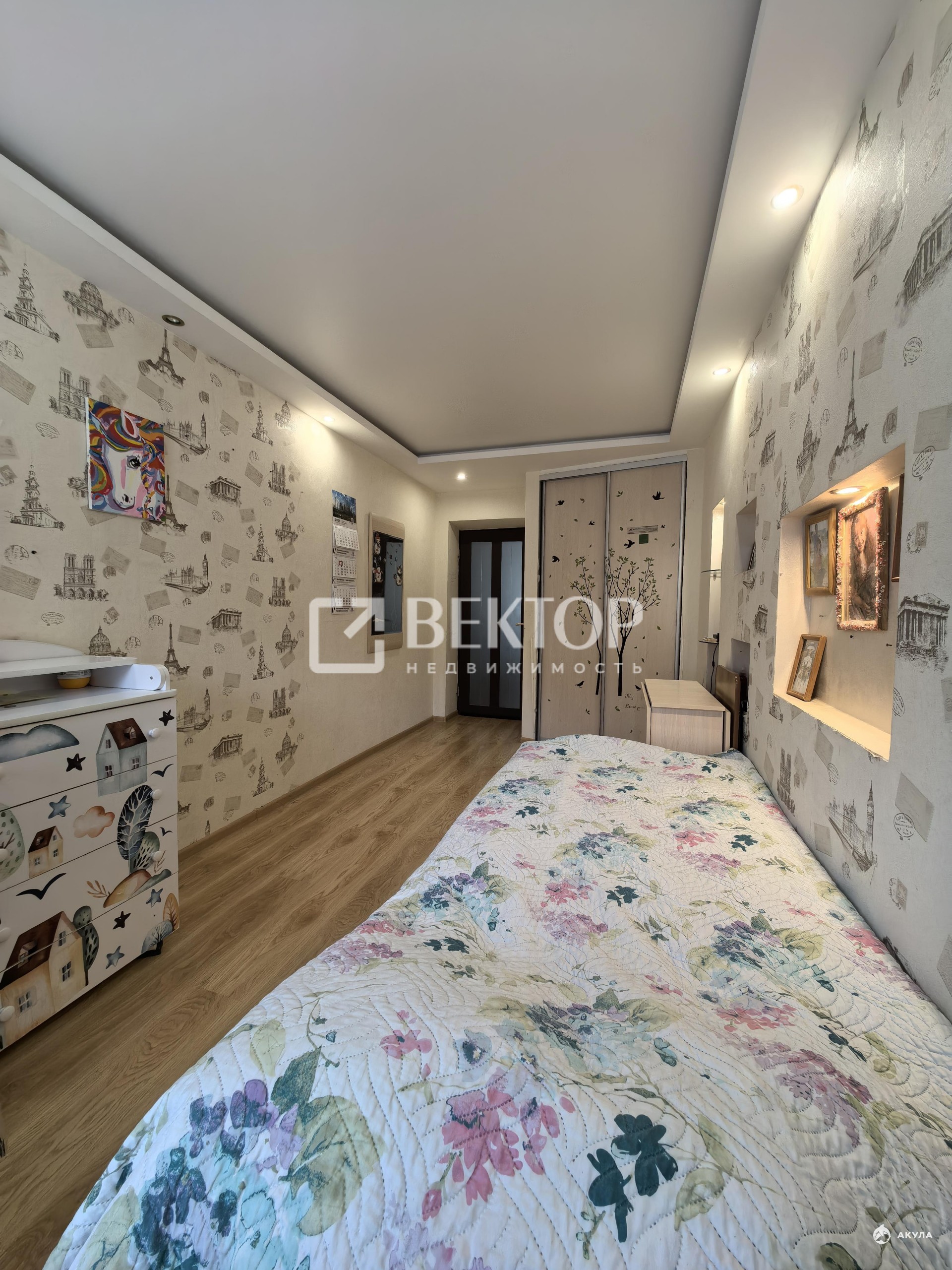 Во всех комнатах установлены натяжные потолки, теплый пол на кухне.