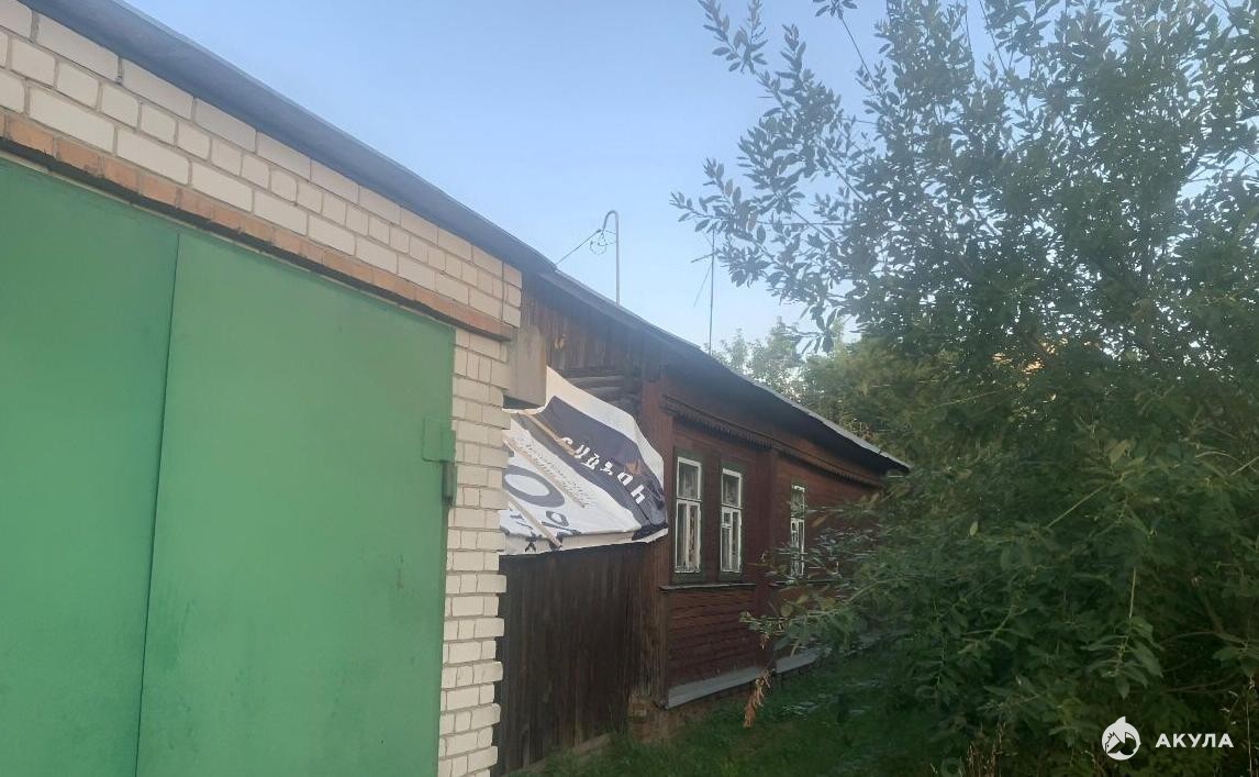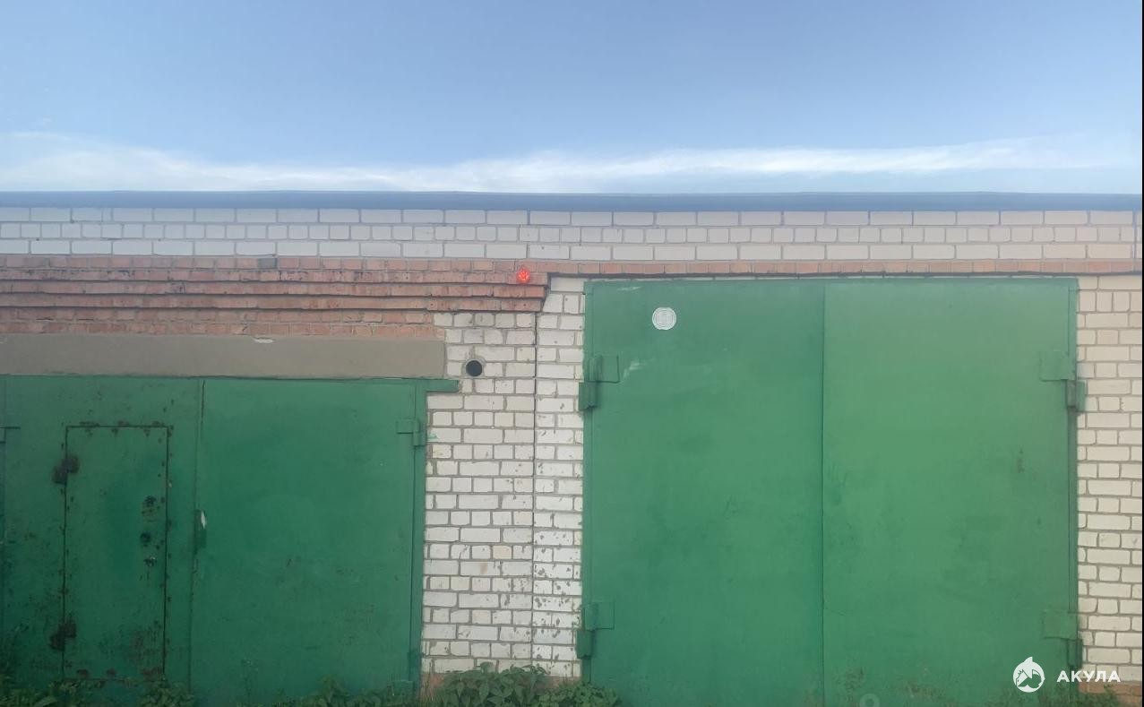 На участке старый деревянный дом без удобств, два кирпичных гаража.