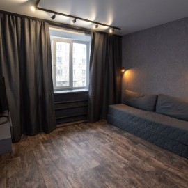 Заменено всё: электрика, окно, натяжные потолки, обои, полы, входная новая дверь, в комнате своя вода, канализация (можно установить кухню и стиральную машину). 2 этаж в кирпичном доме. Остаётся всё - мебель, диван, шторы, тумба под телевизор. Новый ремонт, еще никто не жил!!!...