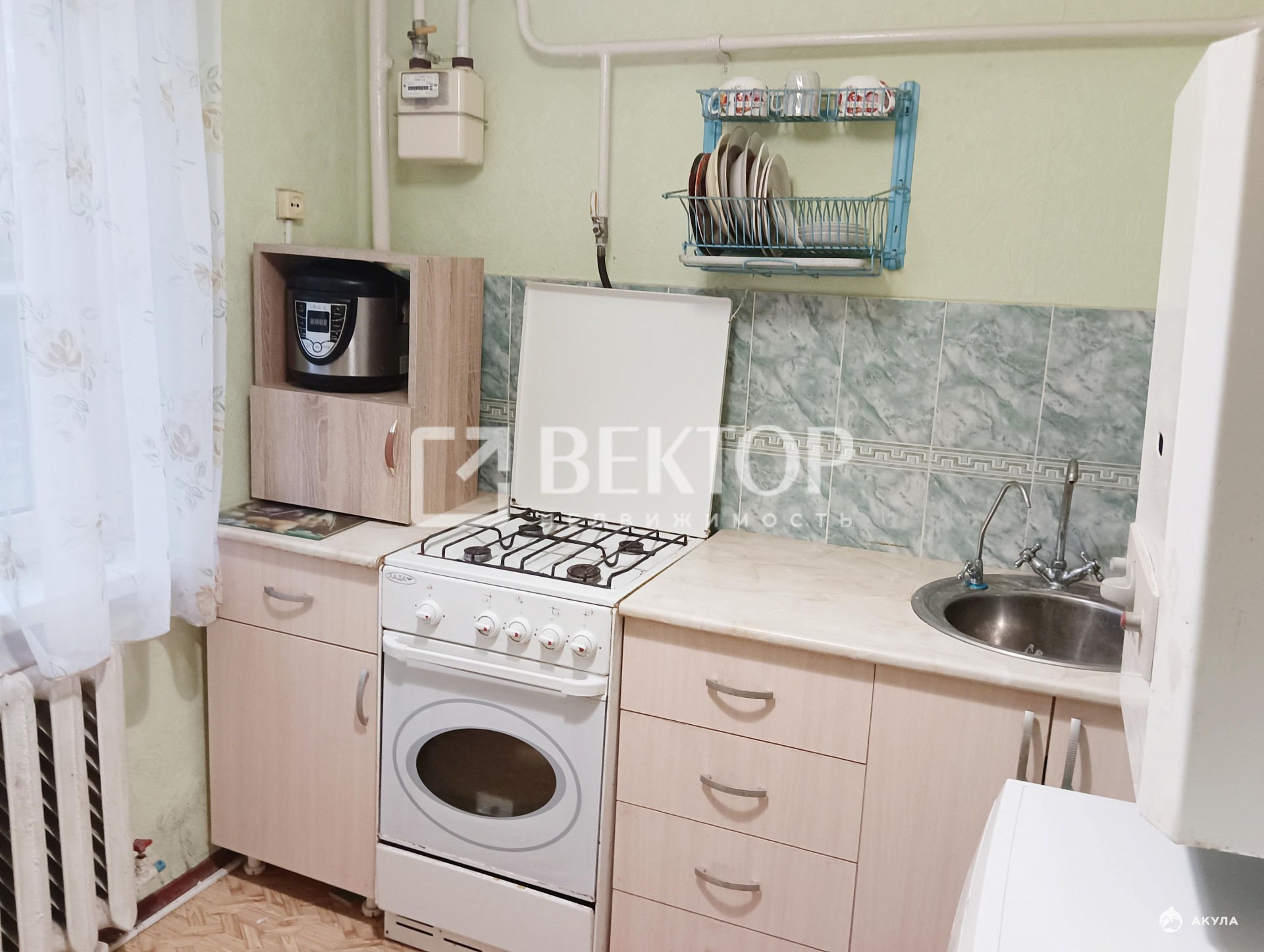 Общая площадь составляет 32 кв.м., жилая площадь — 16, 8 кв.м., кухня занимает 5 кв.м.